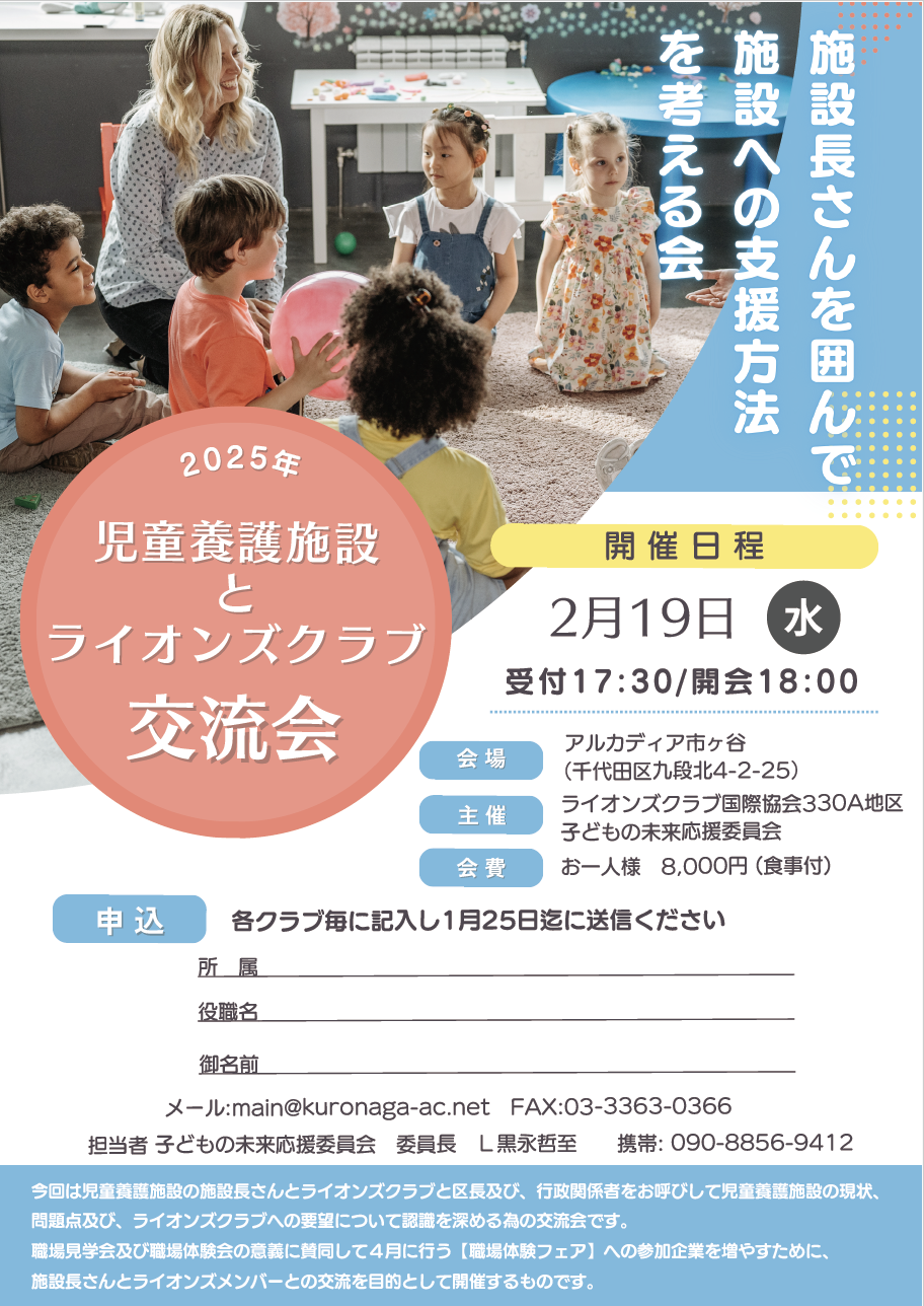 2025年2月19日、児童養護施設との交流会を開催いたします。(参加対象:ライオンズクラブ会員)